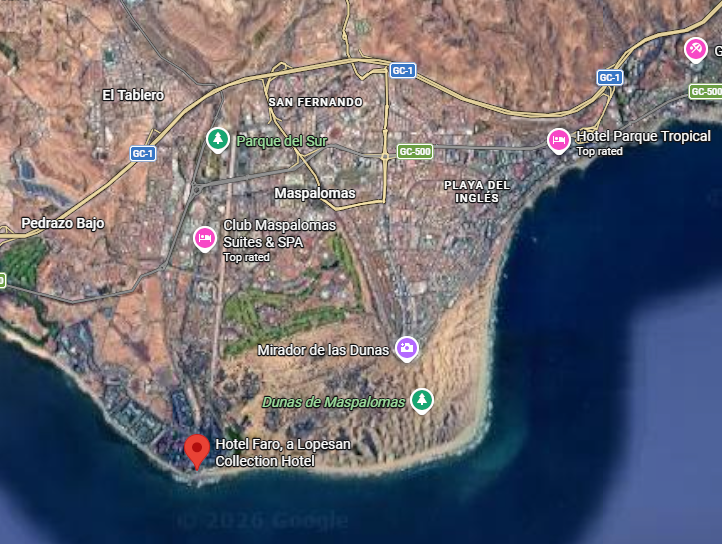 Hotel Faro, Lopesan Collection er glæsilegt og nútímalegt 5★ hótel, staðsett við hið sögufræga Maspalomas-vitahús og rétt við strandpromenöðuna. Hótelið er eingöngu fyrir fullorðna (18+) og býður upp á fágað andrúmsloft, fyrsta flokks þjónustu og stórkostlegt útsýni yfir hafið og sandöldurnar.